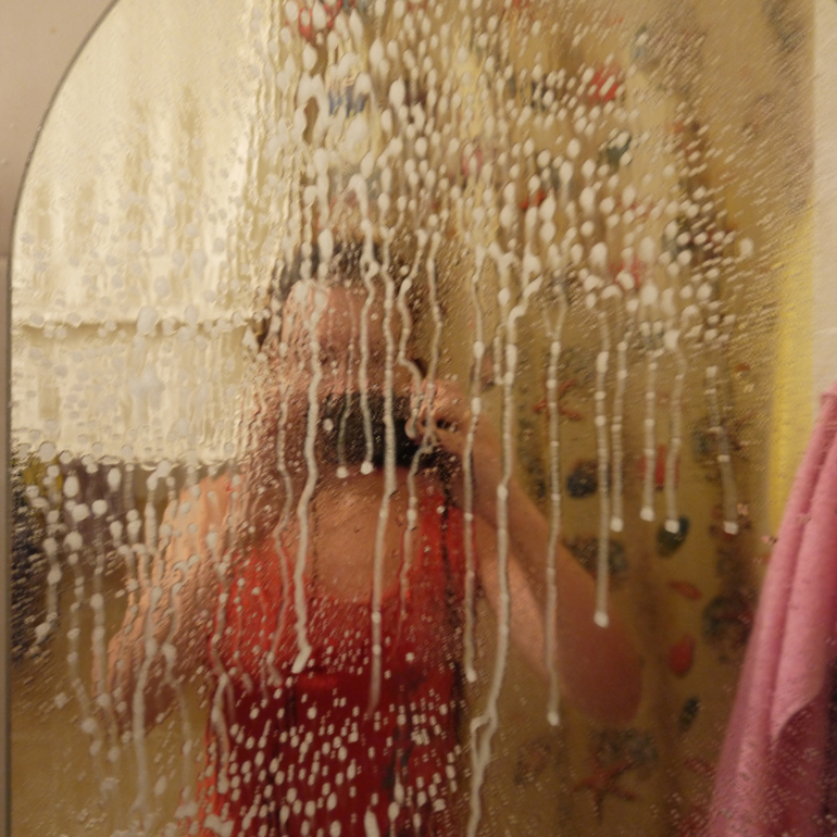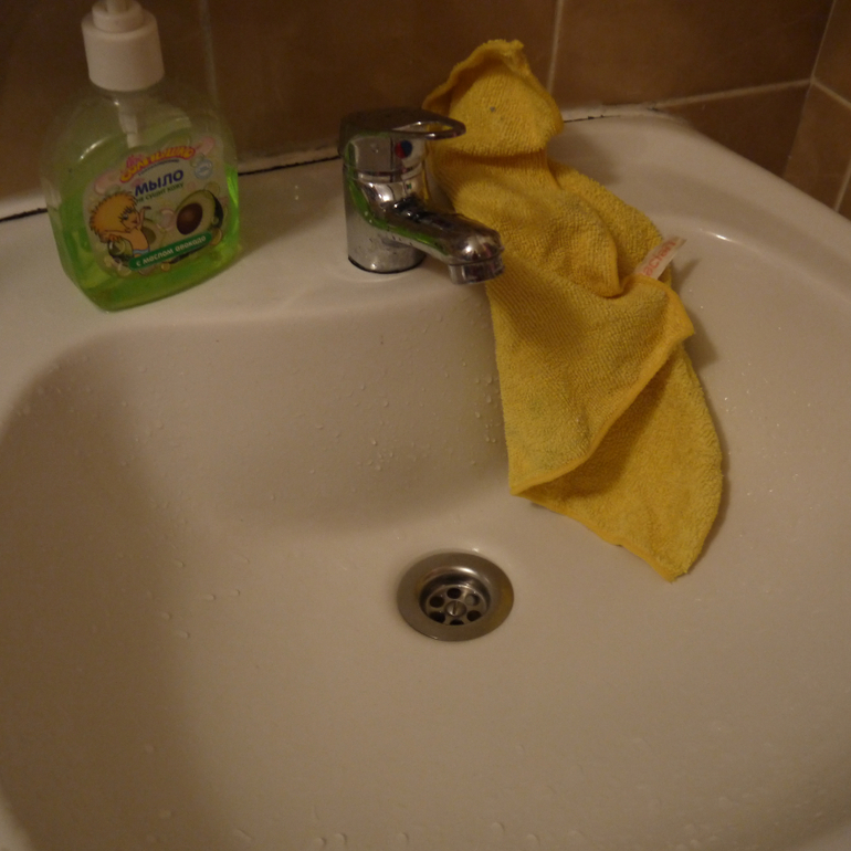 Пока дочка спала,я умылась и протерла раковину и зеркало.