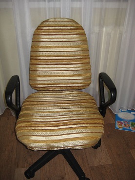 Еще сегодня сделала давно запланированное дело, поменяла обивку компьютерного стула, вот он теперь как у нас выглядит, правда в нижу сиденья нужно было посильнее натягивать, ну это не так важно))