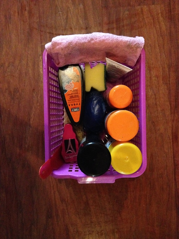 И по моим представлениям удобно, а то вечно не до ухода за обовью, потому что долго доставать кремы, а тряпочку для протирки обуви сушить и хранить негде, так она сбоку вполне удачно пристроена, вот: