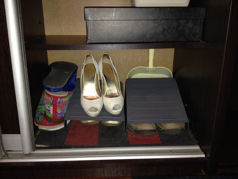 Органайзеров для обуви, конечно, не хватило, но места в шкафу освободилось порядочно.