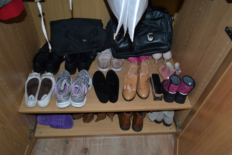 Все перемыла, летнюю убрала другой шкафчик, зимнюю сложила вниз, оставила то,что носим. очень пожалела о том, что выбрасывала коробки из-под обуви. Теперь не буду выбрасывать, хочу обувь хранить в коробках.