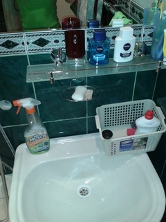 Фото сделала с помощником- мускул для стекол, потом он перекочевал на свое законное место, на полочку в туалете.