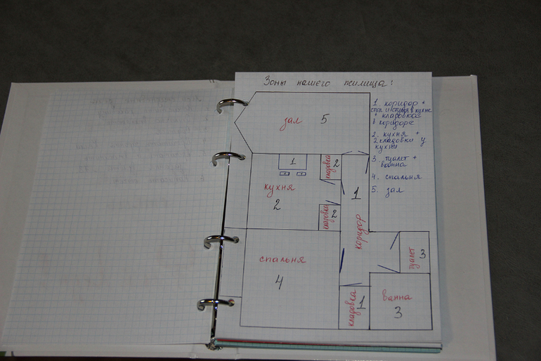 6. Дом на зоны разбила, зарисовала всё в КЖ, правда у меня явно с пропорциями помещений не всё в порядке: