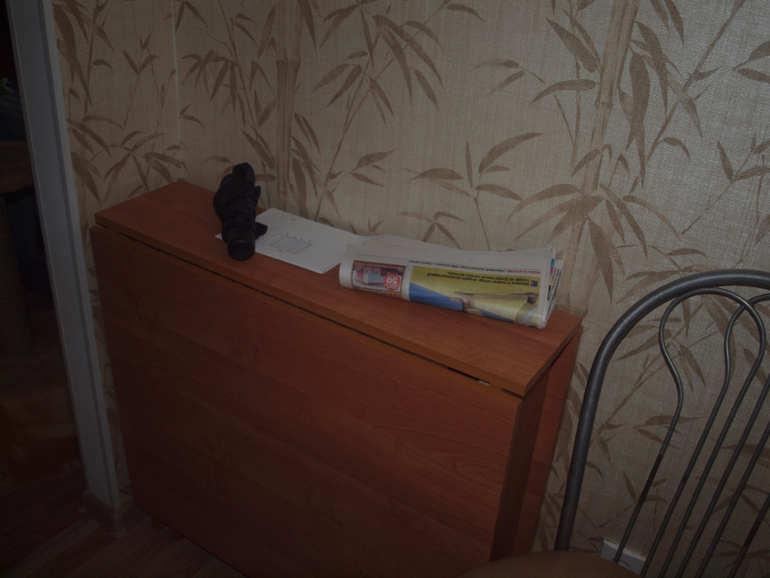 это второй стол на кухне, старый стол, но мне удобно его иметь, особенно, когда готовлю и для гостей, стоит в углу недалеко от обеденного