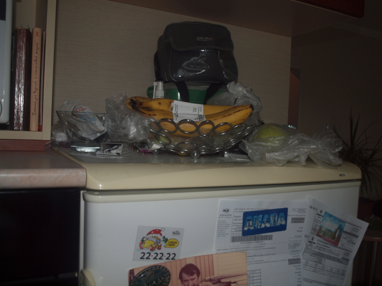 на холодильнике, фрукты правда так и не успела помыть и не все пузырьки лишние убрала, но все впереди