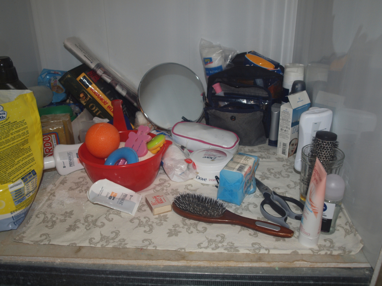 ну и полка в ванной, здесь запланирован шкаф, но пока денег нет доделать, вот полочка, уже начала наводить на ней порядок, теперь скорее поддерживаю