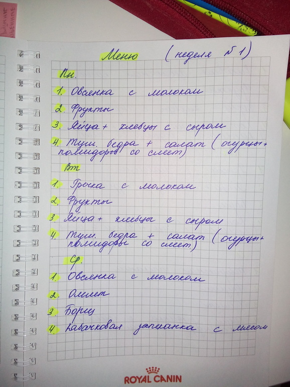 И доп. Задание: написала меню на неделю, так как с сегодняшнего дня придерживаемся правильного питания)))