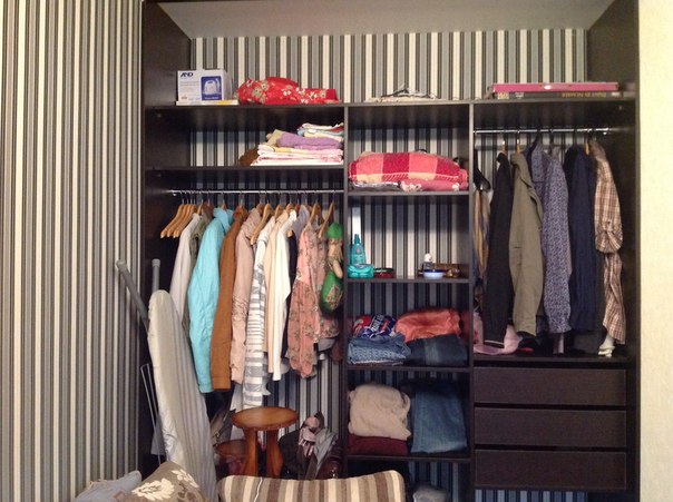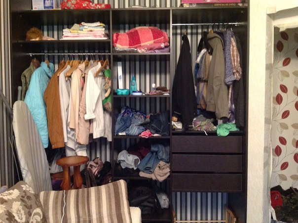 В шкафу прибралась, что заняло меньше 15 минут)) не обращайте внимание, что шкаф пока без дверей - мы их попозже будем устанавливать))