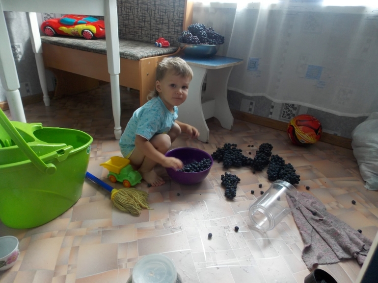 Вчера клятвенно обещала лечь пораньше, чтоб сегодня встать пораньше и взлететь с позаранку. Фиг там - я легла в 2 (читала наших флайбеби))). Поэтому встала я вместе с сыном. Он тоже был ленив и мы всё утро читали, валялись в пижамах на раборанной кровати и собирали паззлы. Наконец, я смогла заставить себя встать, а сын не смог)))) поэтому кровать я не заправила, но сделала зарядку и побежала в душ. Захожу в ванну - там стоит замочеенная со вчерашнего дня моя одежда в ванише в большоооооом таком тазике. В нем мнооооооого так воды. Хотела постирать сразу, но почему-то просто вытащила из самой ванны и поставила тазик на пол.В это время мой сын развлекал собирающихся на дачу бабу и деду. Слышу крик, слезы - бабушка с внуком дереться))) Вообщем, прибежал он ко мне, искать правды, защиты и утешения. Пока я пыталась впустить его, не вылезая из-под душа, он залетел и шмякнулся попой в этот таз, естественно, наклонив его и все разлив. Я выскакиваю, сына отправляю в душ, сама собираю всю эту красоту своим полотенцем голышом. Пока я вытаскивала мокрющий коврик из-под машинки слышу - мне мокро... Мне прямо ливень какой-то!!! Хоба-на, сынок играет с мамой! Поливает ее!! Делает кап-кап!!! Смех, слезы, сопли, выключаем душ, начинаем вдвоем сгребать воду, уже стаканчиком. Мне вообще радостно - мы соседей снизу 3 раза топили)))) Пока я сражаюсь с потопом, сынок уходи на горшок, извините, какать. Приходит ко мне в ванну, хлопает сам себе, говорит "Вылил! Смой!", не хватает у него на спуск силенок. Захожу. Тут сердце мое упало в пятки. Когда Свят выливал свой горшочек его мужественная рука видимо дрогнула и содержимое "немного" разбрызгалось на весь унитаз, на пол и немного на стены. Мужик растет, вон как какает!!! 11 часов. Идем завтракать. Вчера с дачи привезли 4 таза винограда. Сегодня из него повылазили ОСЫ!!!!! Япона мама!!!! Хватаю полотенце, начинаю их вылавливать и за окно отправлять. Показалу сыну, что такое отвага и героизм. Мои писк, вопли и нецензурщина не в счет. Поели. Давай я мыть посуду. Но Свята не остановить - он хочет помыть сам!!! Уступаю почетное место и решаю пока заняться кухонными шкафами. Через какое-то время гордый сын начинает издавать победные звуки. Вытаскиваю свою тушку из недр ящика... Твою-то мать!!!!! Налил в пузырь с Фери воды, болтает им во все стороны и делает пузыри!!! Все вокруг в пене!
