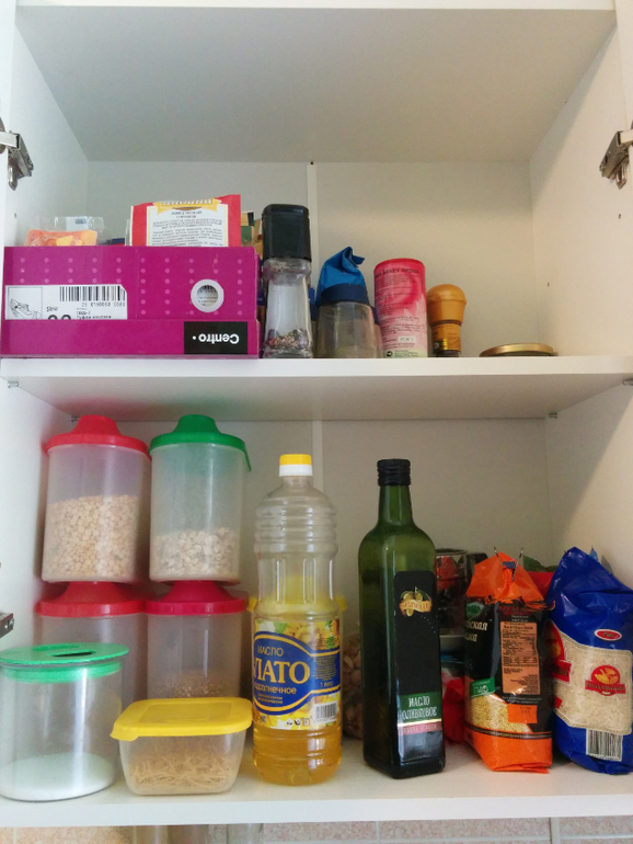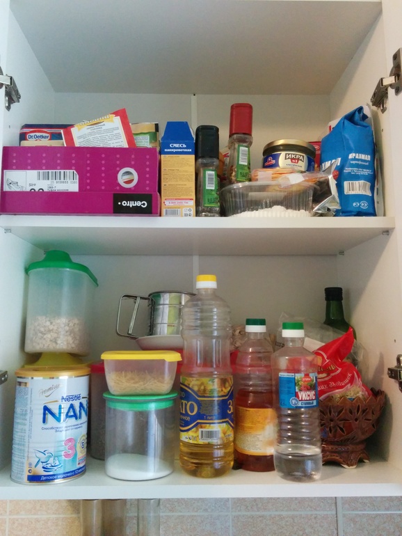 Пока я наводила порядок на полке Тимоша утащил у меня две банки и решил смешать каши =)) Был очень недоволен, когда я отняла банки =))