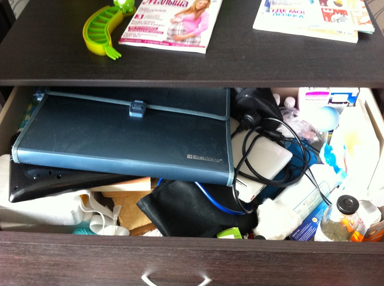 Сегодня 5 минут я расхламляла верхний ящик комода, мусора вышло немного, но было много вещей, место которых совсем не в комоде.