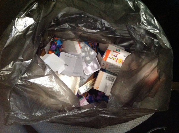 Результат расхламления, в основном, медикаменты, которые лежали не в холодильнике, когда в квартире было больше 25 градусов тепла:
