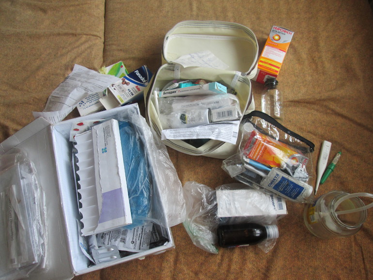 После: Коробки две - детская и взрослая, также косметичка для медтехники. И файл со всеми инструкциями. Отдельно стоят медикаменты первой помощи. Написала список что докупить.