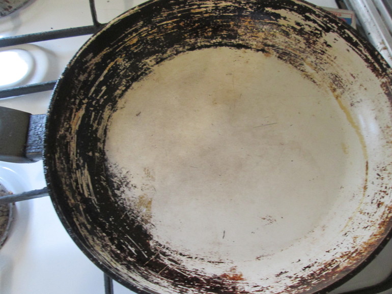 -чем отмыть сковородку (она керамическая, терла средством для духовок амвеевским и метал губкой. Не берется(((