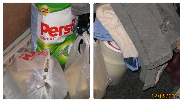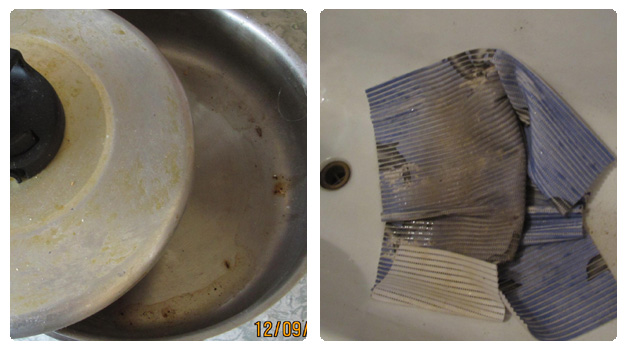Пугалка: найденые на антрессолях сковородки и коврик. Который я изначально честно попыталась отмыть.