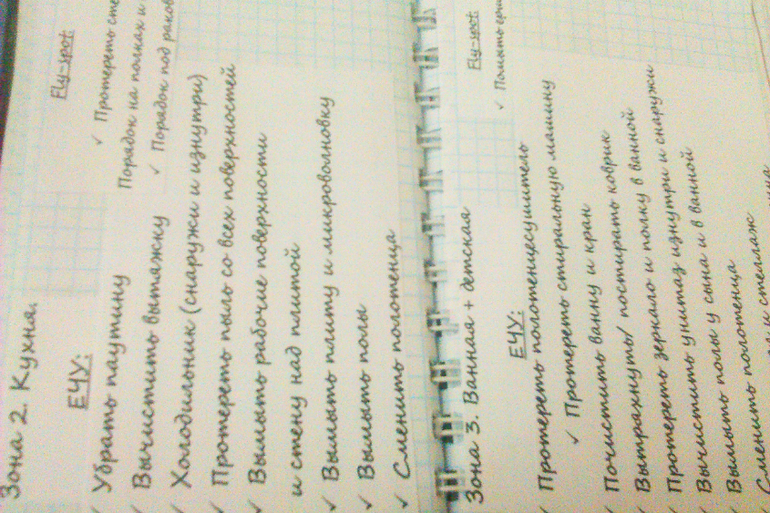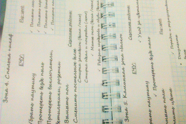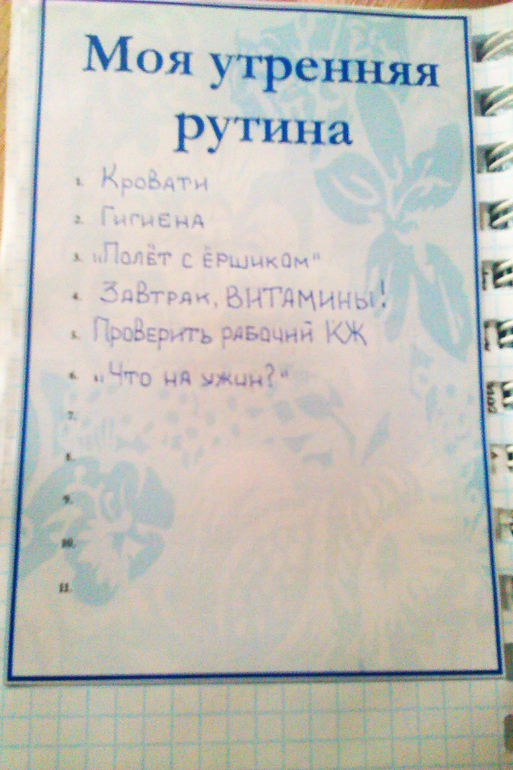 В разделе " Каждый день"- рутины, в разделе "Каждую неделю"- БНП, ЕЧУ, в разделе "Каждый месяц"- походы в парикмахерскую и график сезонной стирки. Покажу некоторые: