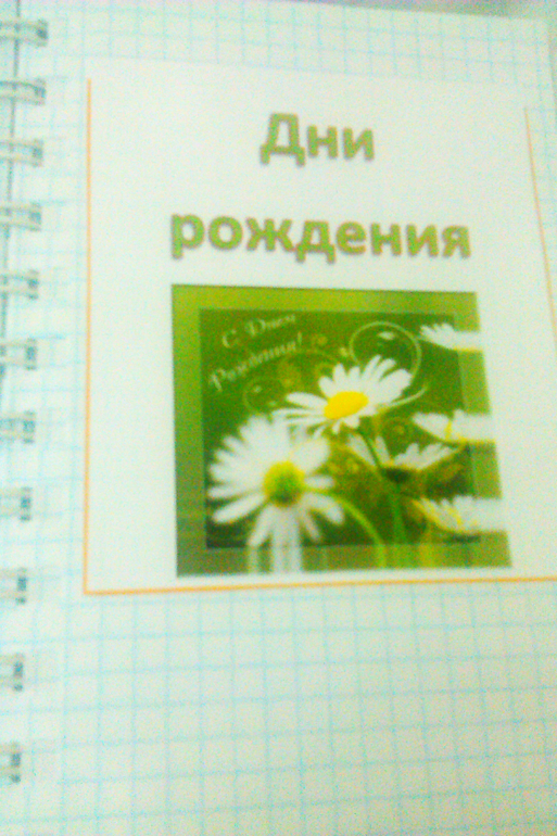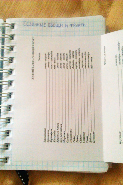 Разделы "Дни рождения " и "Телефоны"-здесь все понятно. " Мои цветы"- там график внесения удобрений. В разделе " Меню" план основных блюд, список сезонных овощей и фруктов (наполняется этот раздел потихоньку):