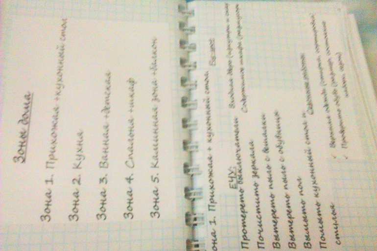 В разделе "Мой дом"- деление дома на зоны и план работы в них: