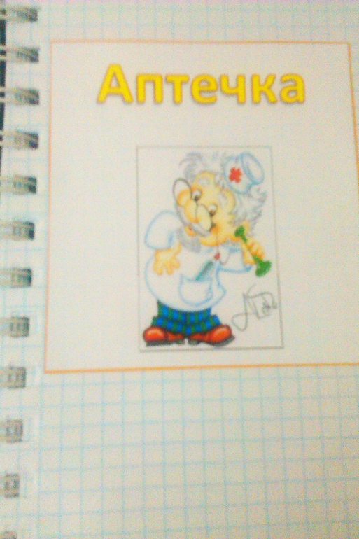В разделе "Аптечка"- перечень ВСЕХ лекарственных средств , которые есть у меня дома , по назначению ( простуда, расстройство желудка, глаза, обезболивающие и т.д.)
