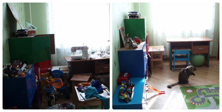 Теперь, собственно, шокирующие фото детской до и более приличные - после. Девочки, я, конечно, рискую потерять ваш авторитет, но до такого состояния мы с ребенком довели детскую за 2 недели буквально (что я в нее не заЛетаю):