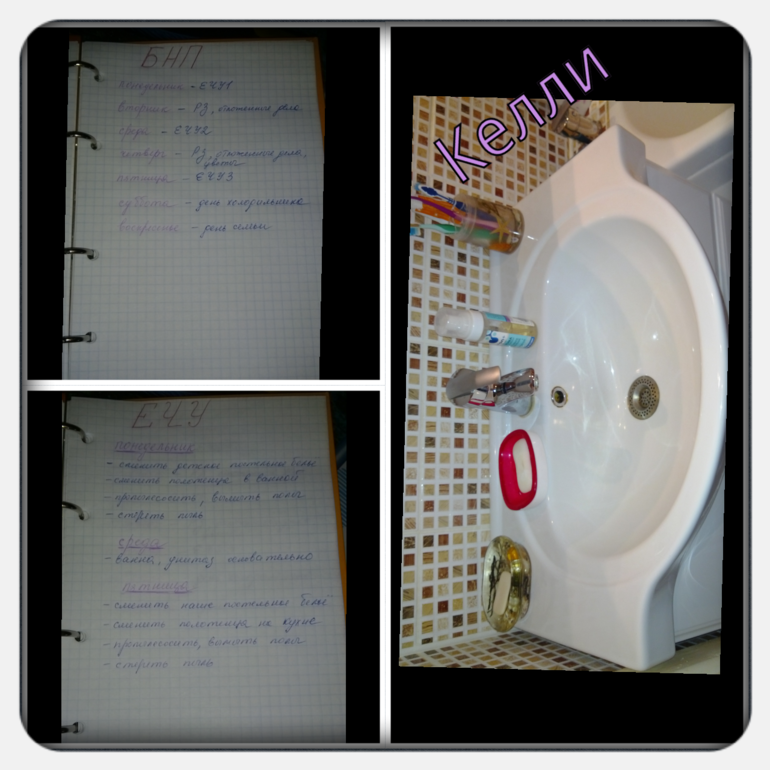 Келли сделала-раковина белоснежная. И РЗ (работа в зоне): вымыта ванна, экран под ней, часть кафеля.
