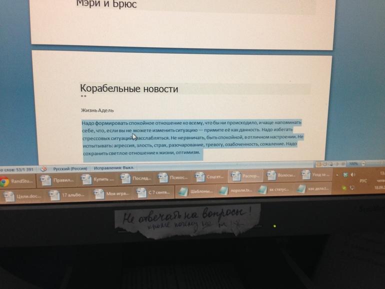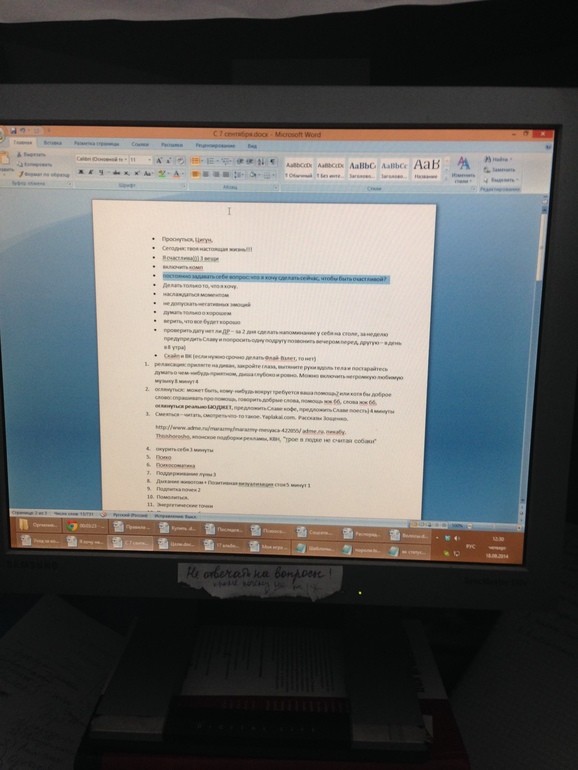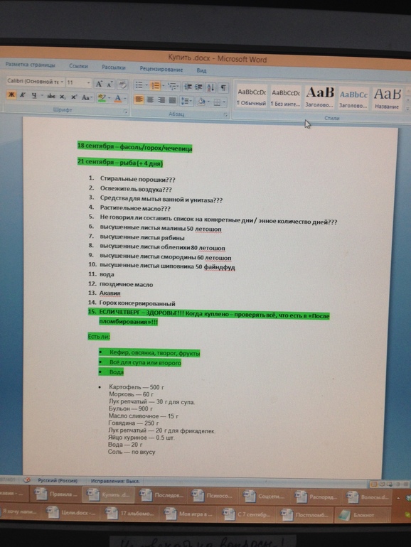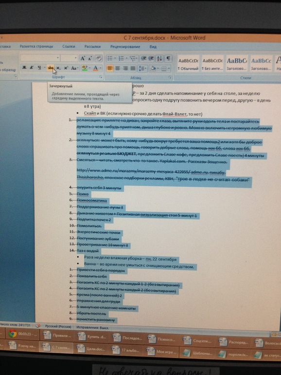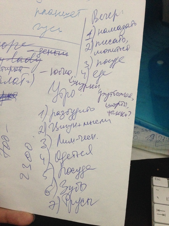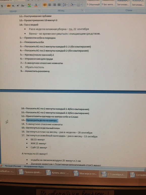 20. Подготавливала свой список рутин на компьютере (когда выполняю пункт, зачеркиваю его, с утра надо снять эти зачеркивания):