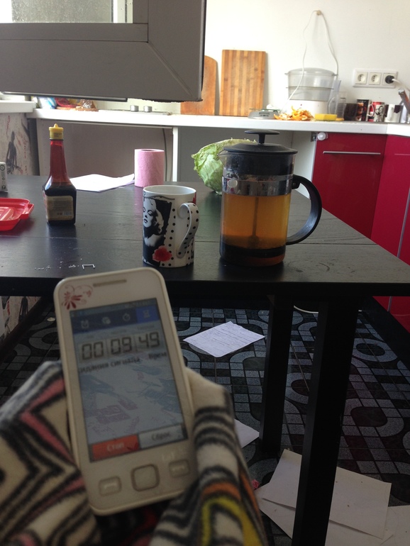 36. Открываю на 10 минут окна и дверь на балкон, чтобы проветрить. Караулю кухонное окно (чтобы не вывалились коты), закутавшись в плед, и пью иван-чай: