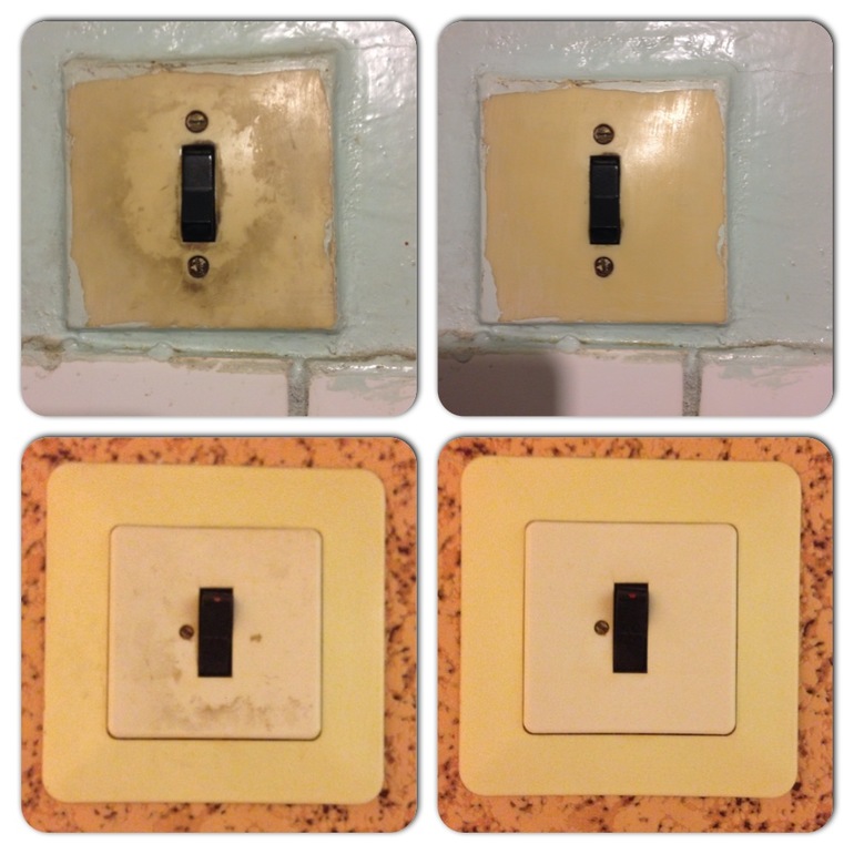 1. Почистила ВСЕ! выключатели в доме!!! Какой кошмаррр!!!У меня никогда до них не доходили руки((( Похоже, что их никто и никогда ранее не мыл! Сейчас пересмотрела фото и увиделя КОСЯК на фото))) пошла исправлять))