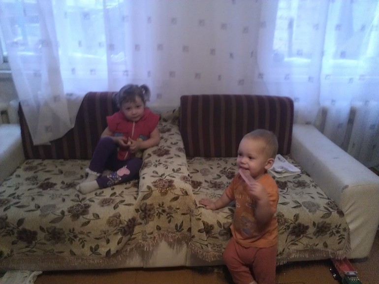Утро началось как обычно в 8:00. Сначала был завтрак творожком и чай, уборка со стола. Папа ушел на работу и детки его провожают: