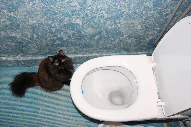 2. По заданию Келли вычистила унитаз и заодно пол в туалете (помыла пол и коврик), кисуля наша как всегда рядом