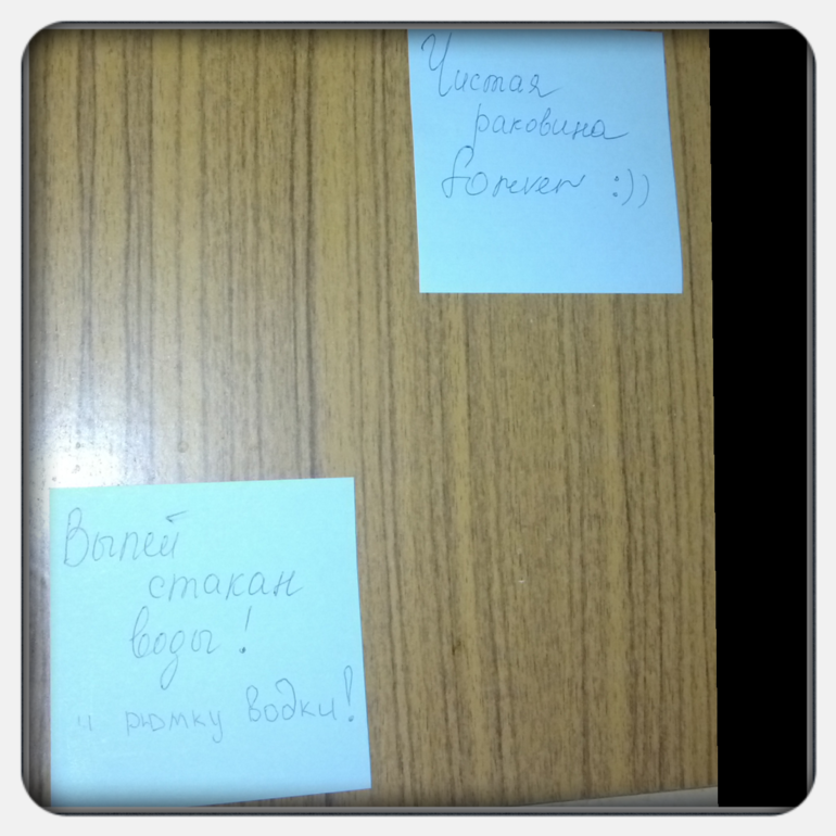 И напоследок. Обновила сегодня стикер на кухне (раковина) и приклеила новый. Муж в мое отсутствие откорректировал: