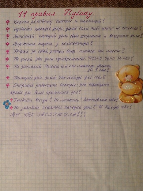 3. Записываем в КЖ и с этого дня ежедневно выполняем Заповеди Флай Леди - записаны давно))