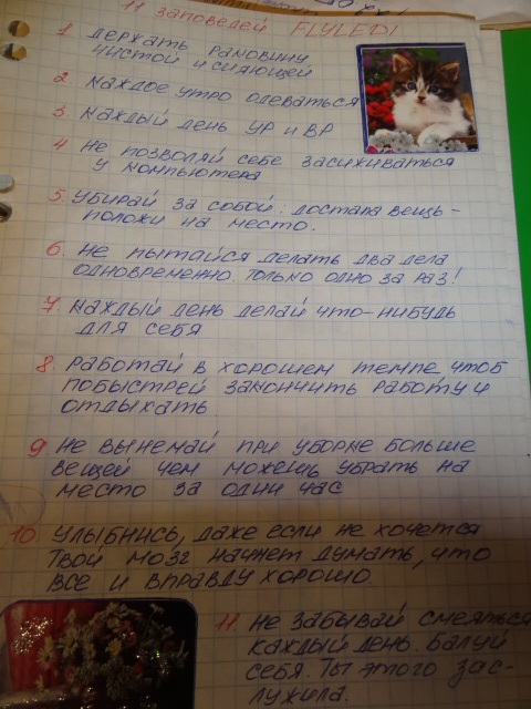 6. Планируем следующий день! В свой блокнотик планирую пока мало что ( день подача показания счетчиков, развивашка, больница)