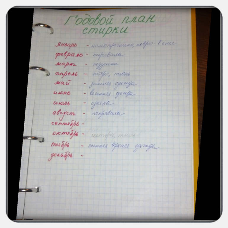 Со стиркой у меня все неравномерно и непостоянно: бывает, стираю через день, а бывает-раз в неделю. Запишу раз в неделю в БНП, но это так, для проформы. Ну и план на год: