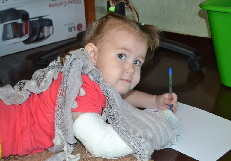 Злата активная, играет. Иногда говорит, что ручка болит, и надо что бы я держала ее руку в своих руках. Иногда психует из-за ерунды, Зайка моя. Натерпелась. Сегодня только в коридор зашли, она начала, говорить, что боится дядю.
