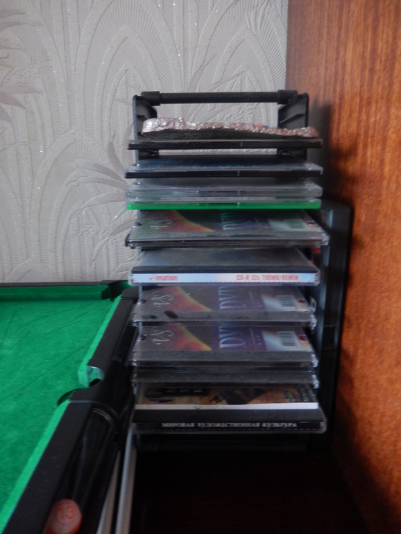 Выкинула только 2 диска, а фотки надо будет позже залить в интернет, тогда выкину эту полочку без сожаления! Или отдать сыну...на игры... Вот она, моя хомячья натура. Ладно, если и дам сыну поиграть, то не больше недели, а потом все равно выкину!