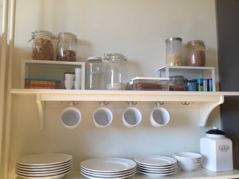Задание на сегодня: Я помою сервант в зоне столовой - у меня это кухонные шкафчики, в которых хранится посуда повседневная и праздничная, и 2 полки с повседневными тарелками-чашками.