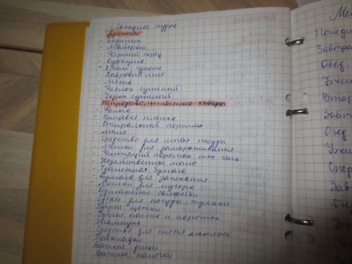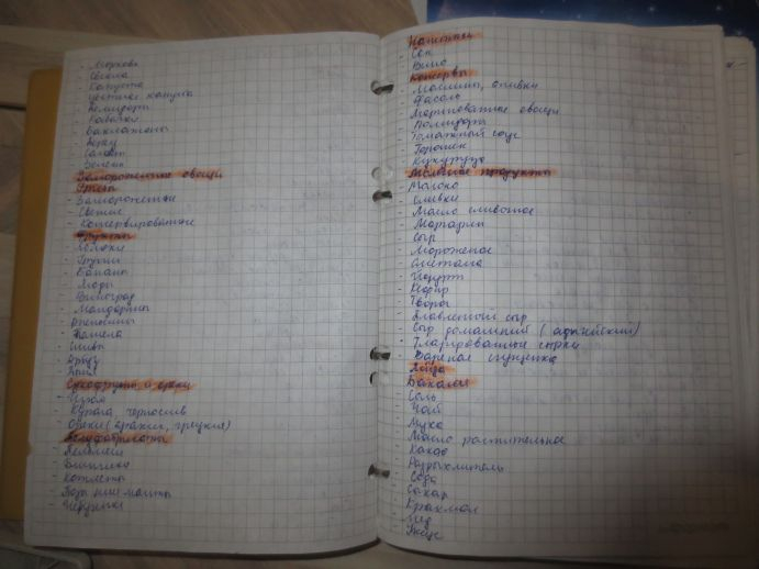 Вот такой у меня солидный список покупок. он также был у меня в электронном виде, но остался на компьютере, который стоит в прежней квартире.