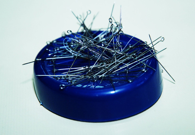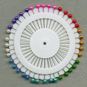 К таким булавкам желательно бы купить магнит.Тут я вам не советчик(((Могу лишь сказать,что лучшие-канцелярские,помните на учительском столе жили,такие кругленькие?
