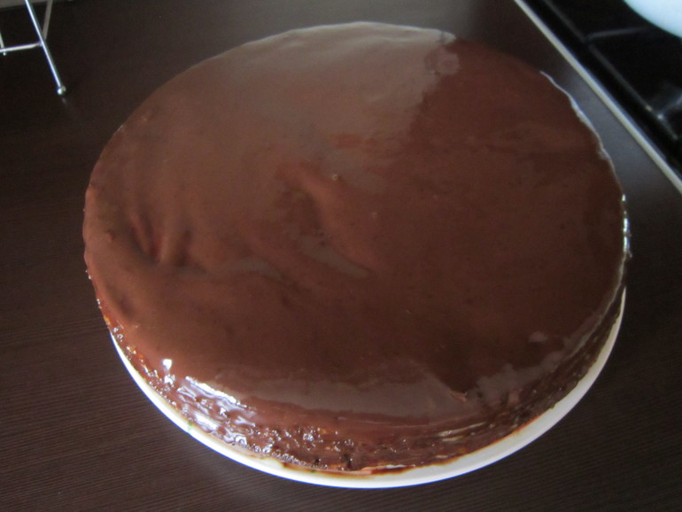 Рецепт: желатин -10 гр., сливки- 200 мл., шоколад 200 гр. Желатин замочить в воде. Сливки подогреть, но не кипятить, растворить в них желатин, затем добавить шоколад, хорошо перемешать до растворения шоколада, дать остыть (немного). Я делала полпорции и вместо сливок взяла молоко. Получилось! Даже с моими руками-крюками.