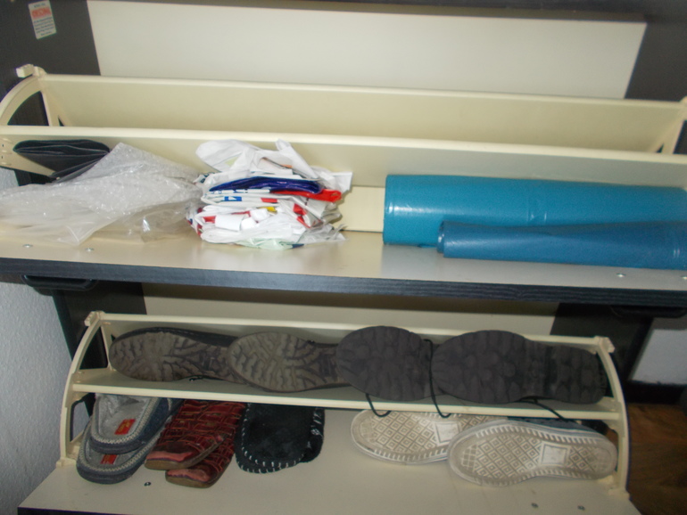 Сегодня решила разобрать полку для обуви. Я уже это делала, в начале полета, но последние 1,5 недели ослабила контроль за ХС и вот что получилось... Это даже хуже, чем было в начале полета ((((... У нас это место просто притягивает всякий хлам.