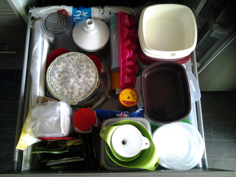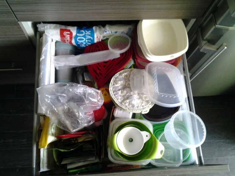 3. Келли. Не особо поняла про чемодан со столовым серебром, но в ящике разобрала кухонном. Заодно тудаже формочки от блендера пристроила. А то лежали они как сиротинушки в родной коробке из под блендера на " балконе". А коробку в утиль! Ура!