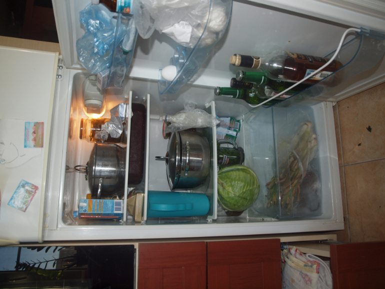 это холодильник после, выкинула лекарства ненужные, протерла полочки мыльной водой, пакет молока выбросила, а так хорошо все было
