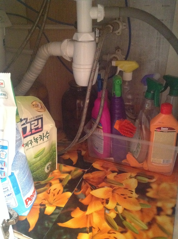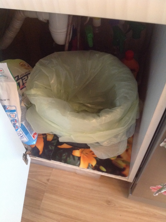 Заодно помыла мусорное ведро и выполнила задание Келли - прибрала шкафчик под раковиной