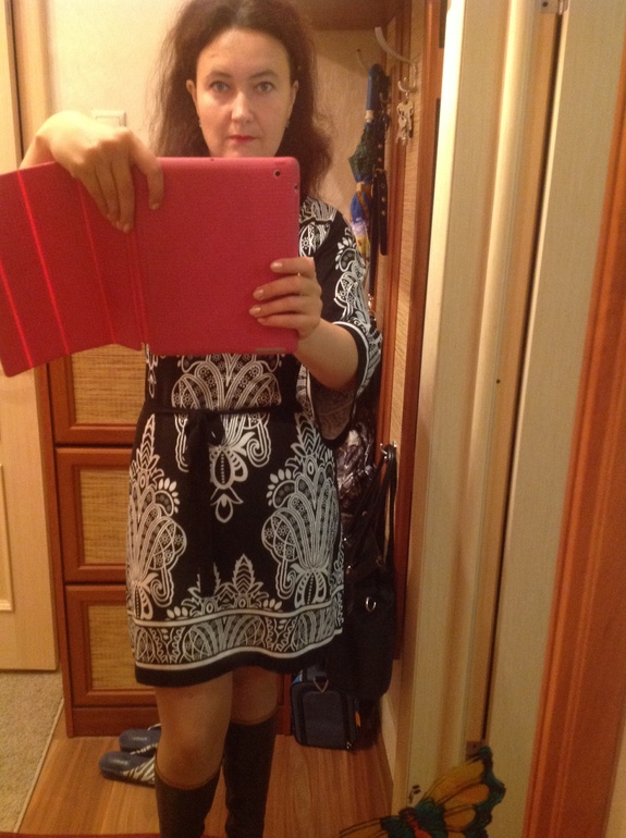 Перед выходом сфоткалась, сына отвожу в школу, после уроков забираю, сидит у меня и прописи пишет, им много писать задают.