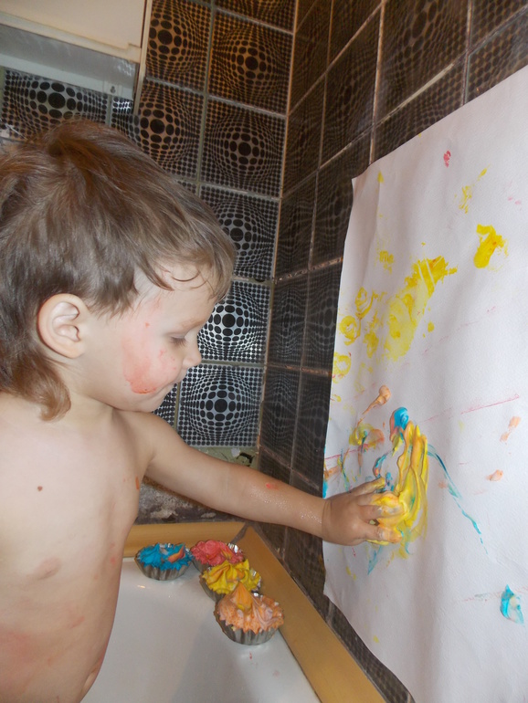 Наигравшись от души, а это значит 2 часа и заслужив звание СамаДураВиноватаЗачемТыЭтотРисВообщеСделала мы идем в ванну. По субботам у нас мега-рисование. Сегодня вот с пеной для бритья