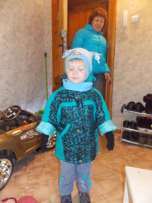 Мама пошла за хлебом и захватила с собой Святку! Чудесный день)))) Одеваю, выпроваживаю, провожаю!