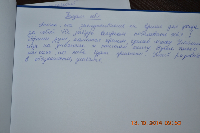 1. В КЖ страничка "Балуем себя"уход за собой,чтение, приятные покупки КЖ страничку завела)))