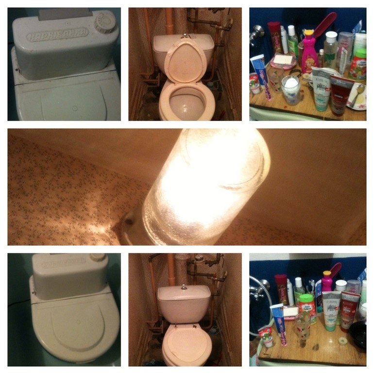 Протереть машинку, убрать на полке, люстра и унитаз.