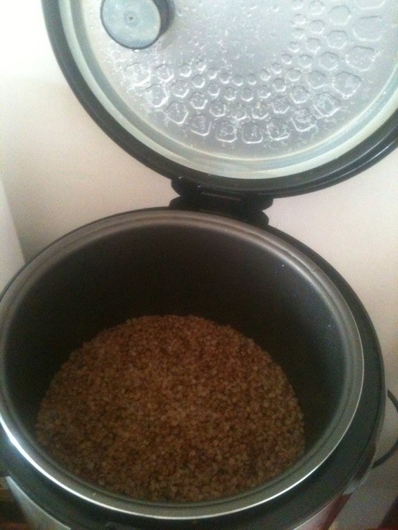 А это ежевечернее поклонение нашей вдохновительнице цветного риса!